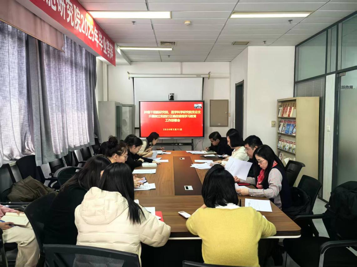 3月11日,肿瘤干细胞研究院、医学科学研究院党总支召开树立和践行正确政绩观学习教育动员部署会。研究院领导班子成员、党总支委员、党支部书记和委员、科级干部参加会议。会议由党总支书记韩静主持。